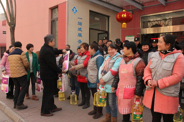 在新春佳節(jié)即將來臨之際,2月12日上午,園區(qū)城管局副局長楊同異帶領(lǐng)建發(fā)公司成員慰問奮戰(zhàn)在一線保潔及保安人員,為他們送上了米、面粉、油等慰問品。