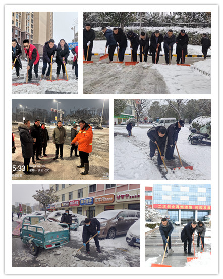 清雪現(xiàn)場,大家不畏嚴(yán)寒、齊心協(xié)力,及時對園區(qū)主干道、各物業(yè)項(xiàng)目內(nèi)部道路的積雪進(jìn)行清理,保障了群眾的出入安全。此外,建發(fā)公司還充分利用微信群進(jìn)行宣傳,及時提醒業(yè)主注意雪天道路安全。