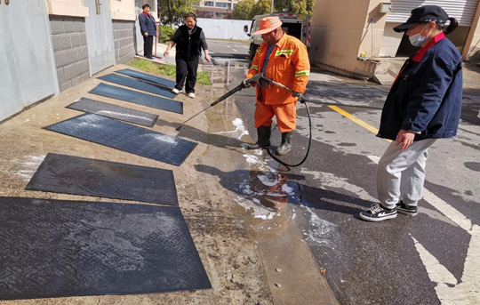 小小的地墊,暖暖的關懷,井然有序的清洗現(xiàn)場、忙碌交加的工作人員、煥然一新的腳墊,一時間成為小區(qū)一道溫情滿滿的風景線,既干凈了墊子,也溫暖了居民心。
