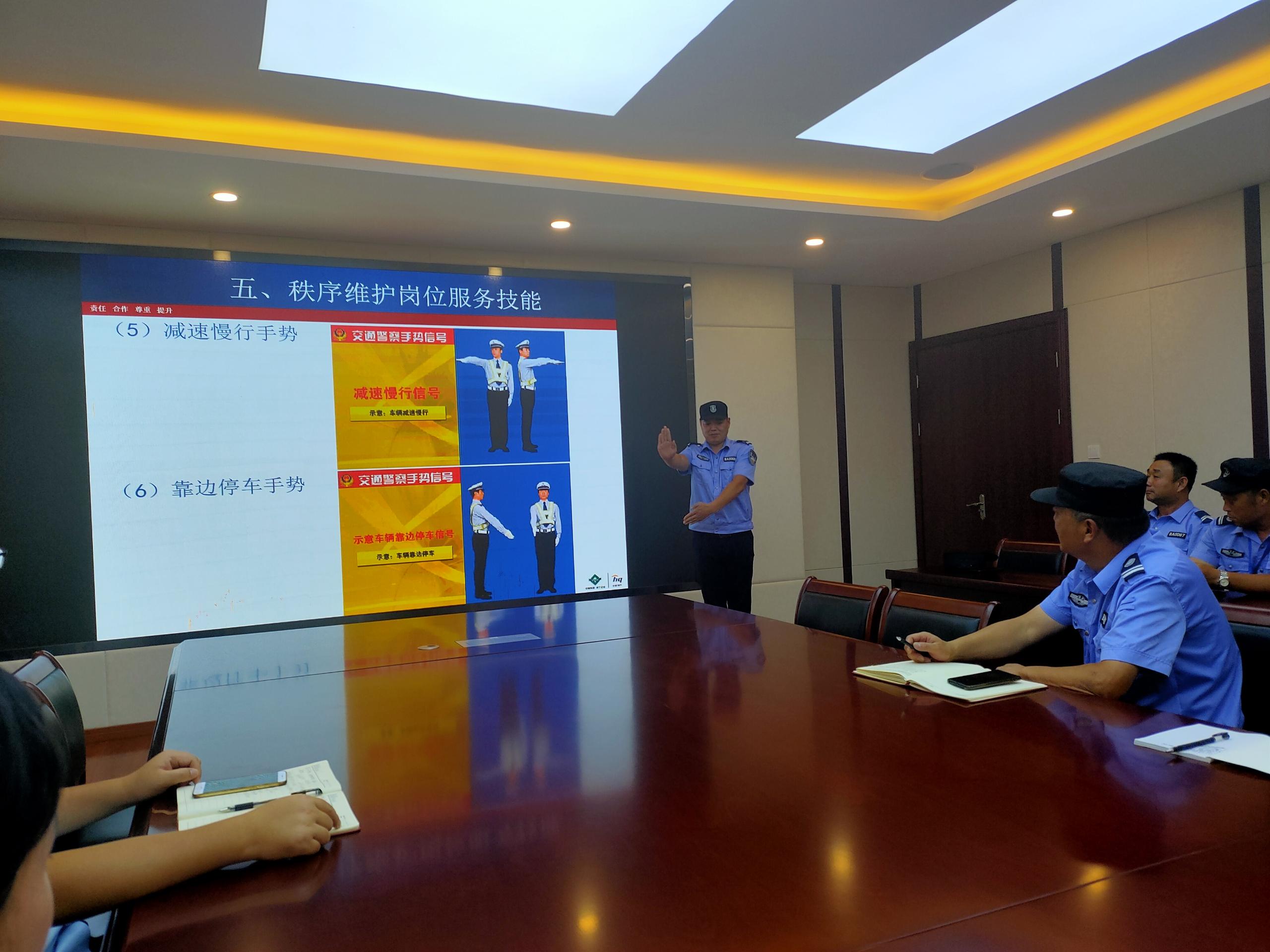 此次培訓(xùn)主要講解了道路交通法律法規(guī)、交通標(biāo)識(shí)標(biāo)線、交通事故認(rèn)定知識(shí)以及如何正確文明行車。根據(jù)保安人員崗位職能特點(diǎn),結(jié)合校園周邊交通現(xiàn)狀及交通陋習(xí)等方面,教授安保人員如何做好一名校園交通安全宣傳員、引導(dǎo)學(xué)校學(xué)生安全上下學(xué)、應(yīng)急處理校園周邊交通事故等。 隨后介紹了常用的交通指揮手勢(shì),講解指揮手勢(shì)的動(dòng)作要領(lǐng)及含義。