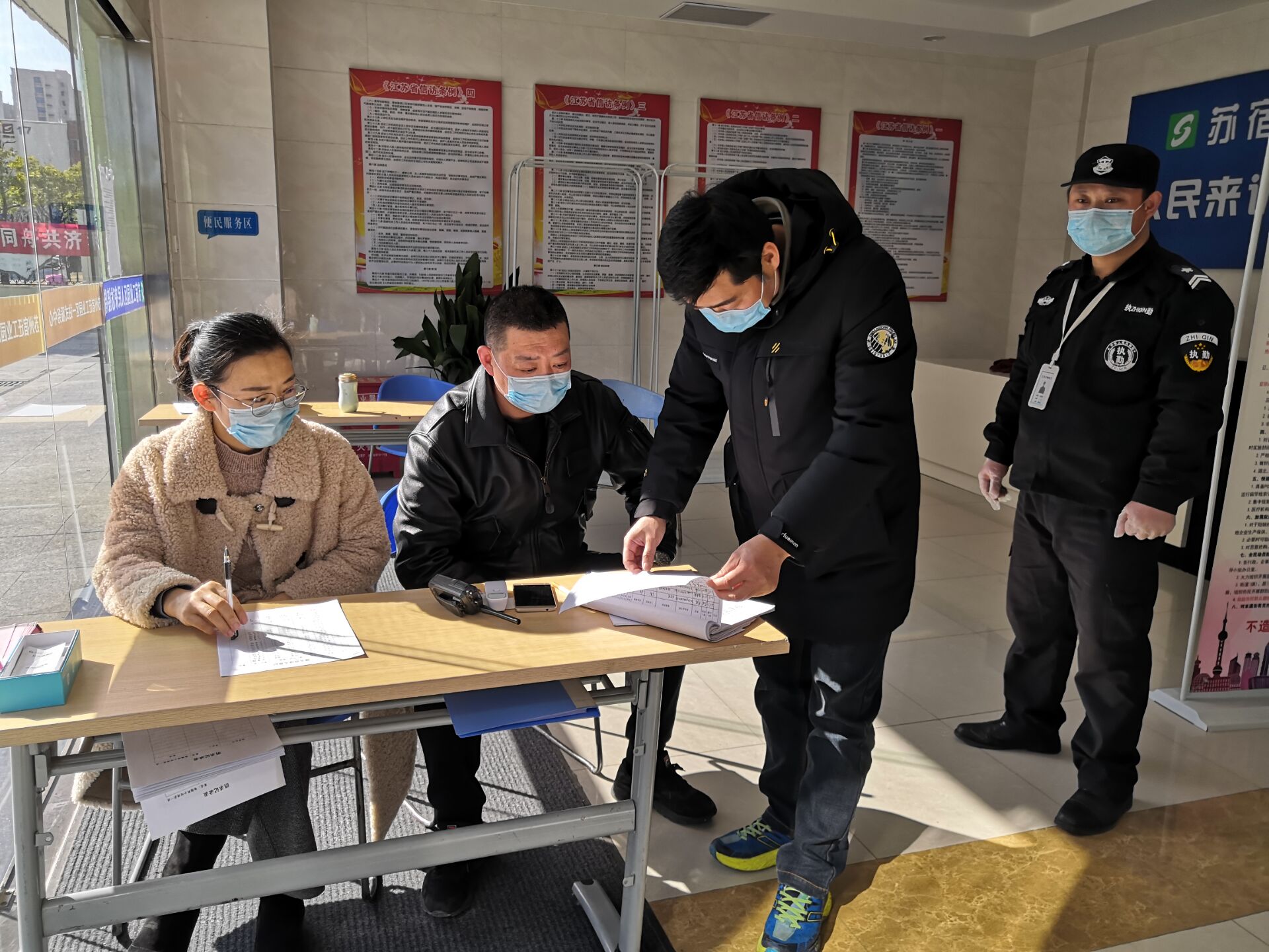 建發(fā)公司物業(yè)管理部經(jīng)理范以加,大年初二他就從老家返回奔赴崗位奮戰(zhàn)在一線,部署檢查落實(shí)部門(mén)物業(yè)項(xiàng)目疫情防控工作,至今一天也沒(méi)有休息。他說(shuō):“物業(yè)管理部承擔(dān)著園區(qū)公舍、蘇宿工業(yè)坊、夢(mèng)家園、外國(guó)語(yǔ)學(xué)校等多個(gè)項(xiàng)目的物業(yè)管理工作,涉及范圍廣、面對(duì)人員多,特別是園區(qū)公舍作為園區(qū)唯一的企業(yè)職工集宿區(qū),企業(yè)復(fù)工后將有4000余名入住員工陸續(xù)返崗,是園區(qū)疫情防控工作的重點(diǎn)和難點(diǎn),疫情防控壓力巨大。我們一刻也不能放松,馬虎不得,作為一名退伍軍人、一名黨員,我必須以身作則,沖鋒在前。”