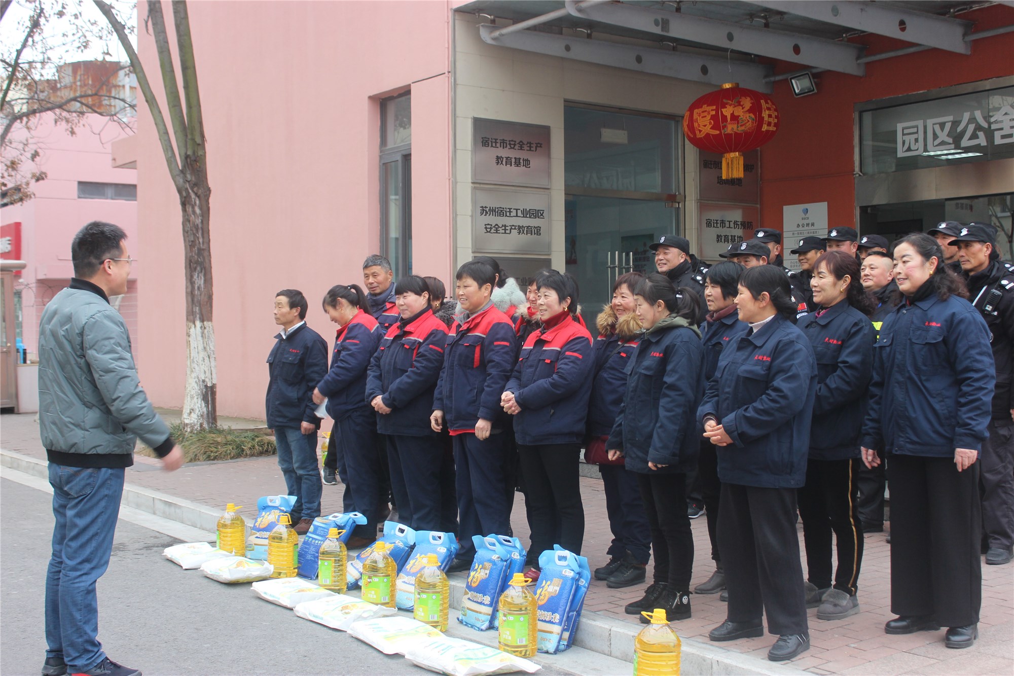 在新春佳節(jié)即將來臨之際,1月21日下午,公司副總經理倪松慰問了奮戰(zhàn)在一線保潔及保安人員,為他們送上了米、面粉、油等慰問品。
