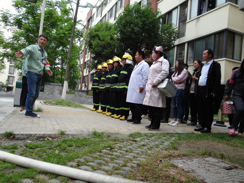 演練開始,物業(yè)部安全員首先講解了消防知識及逃生注意事項,隨后進(jìn)行人員緊急疏散、傷員救護(hù)及火場滅火演練。