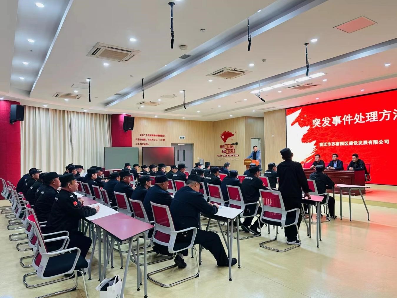 為進一步加強項目應急能力建設,提高救援應急處置能力,4月18日下午,建發(fā)公司在蘇宿外國語學校召開突發(fā)事件應急知識講座,園區(qū)公舍、蘇宿工業(yè)坊、蘇宿外南北校區(qū)、夢家園、生產力中心等項目安保人員參加了培訓。