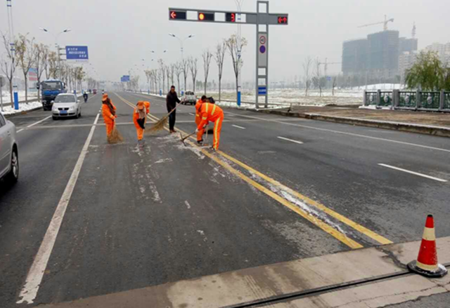11月24日,小雪節(jié)氣剛過,宿遷便迎來了一場突如其來的小雪,雖然路面積雪不多,但伴隨著凜冽的寒風,氣溫驟降,次日早晨部分路面仍存在結冰現(xiàn)象,加上路面落葉較多,環(huán)衛(wèi)工人天未亮就走上街頭開始除雪化冰,對于他們來講,這注定又是忙碌的一天,經(jīng)過3個小時緊張而有序的忙碌,基本完成了園區(qū)主次干道的清掃工作。